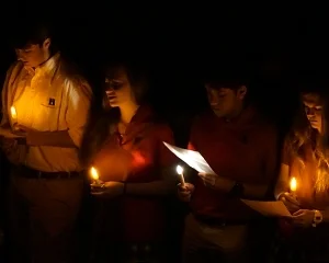 The first years the Bibles were given, the senior class funded the Bibles, and seniors have always played a part in the Bible Ceremony. The seniors encircle the seventh graders, holding candles, and sing, “Thy Word is a lamp unto my feet and a light unto my path,” representing the tradition of placing the Word of God into the hands of our youngest students.
