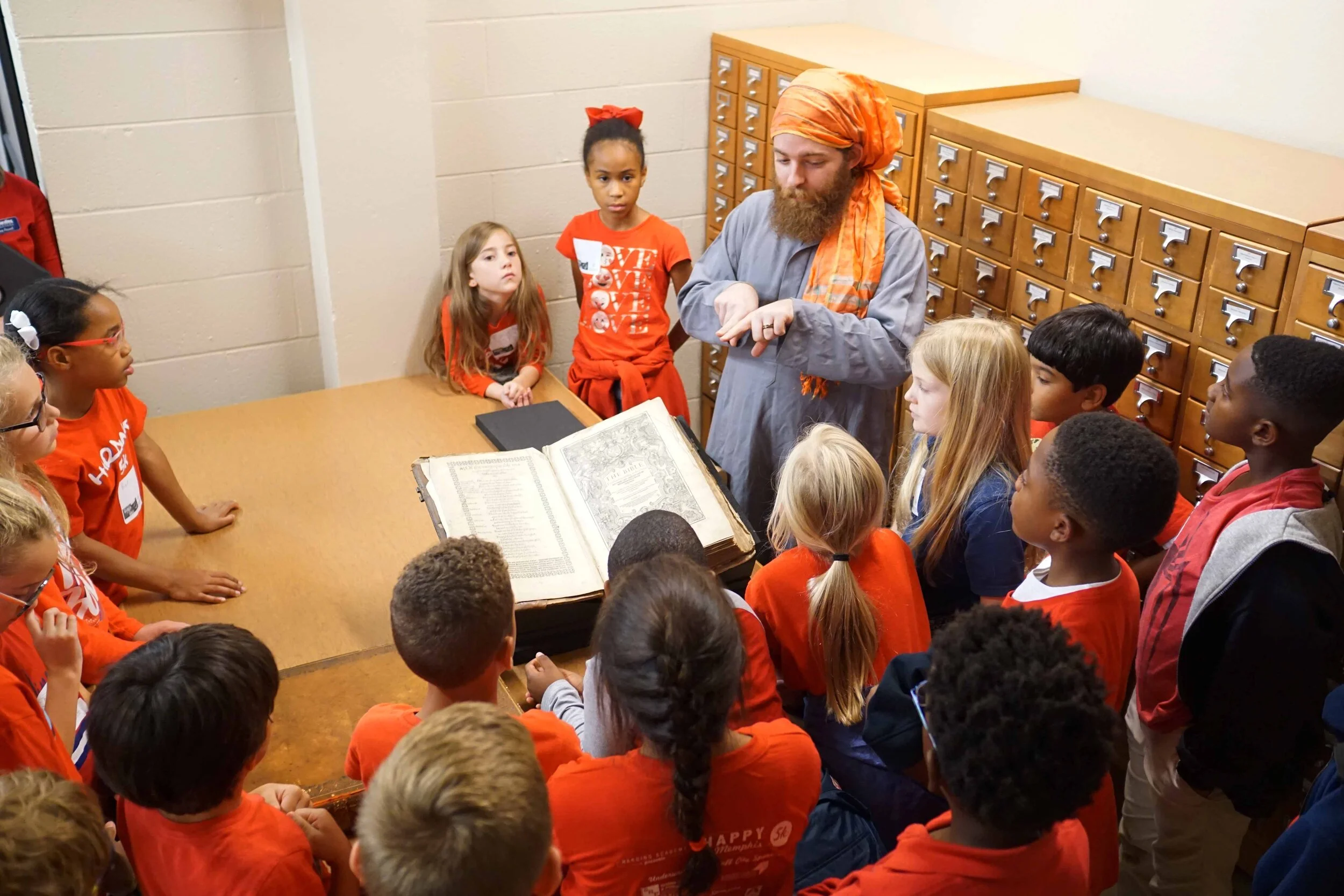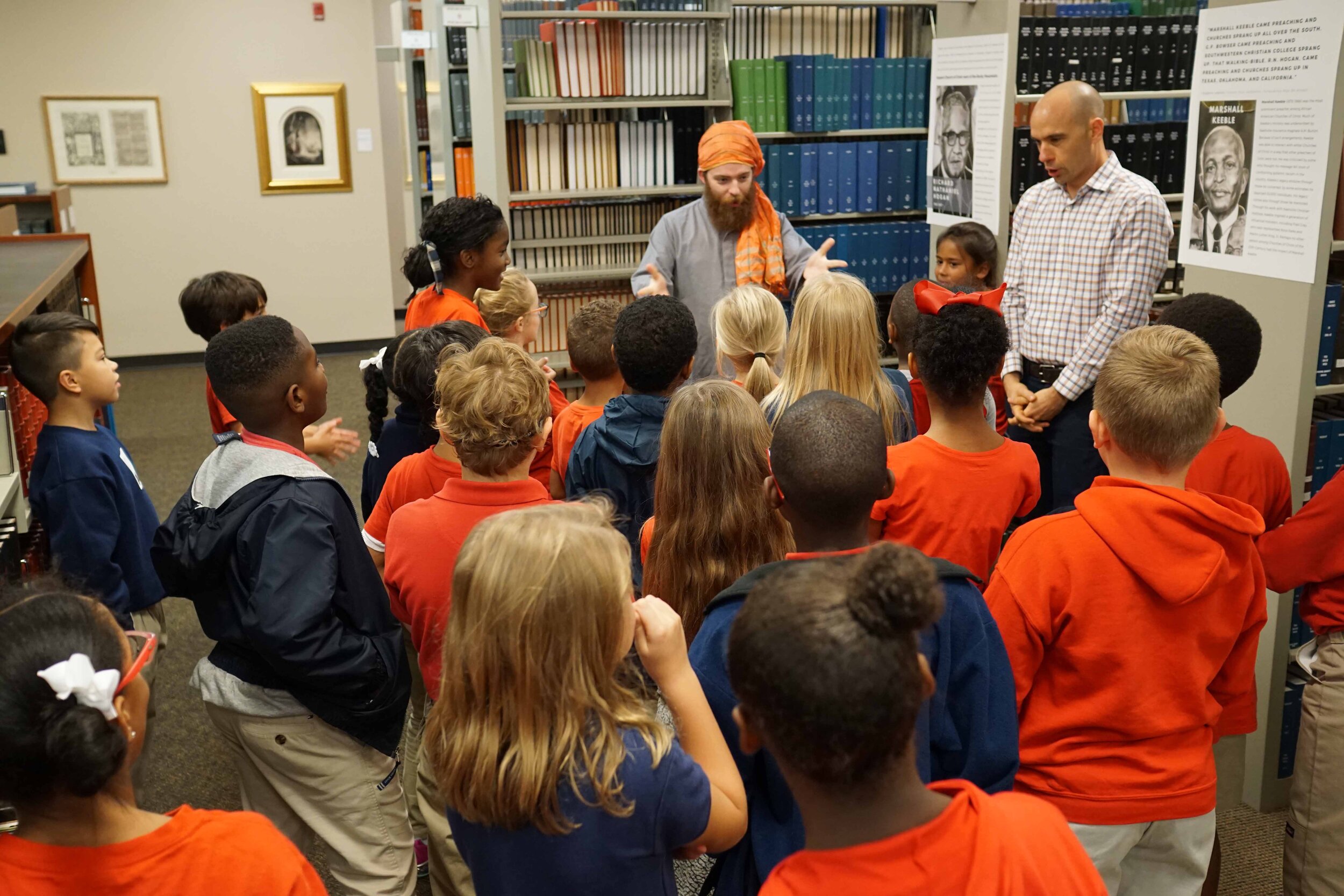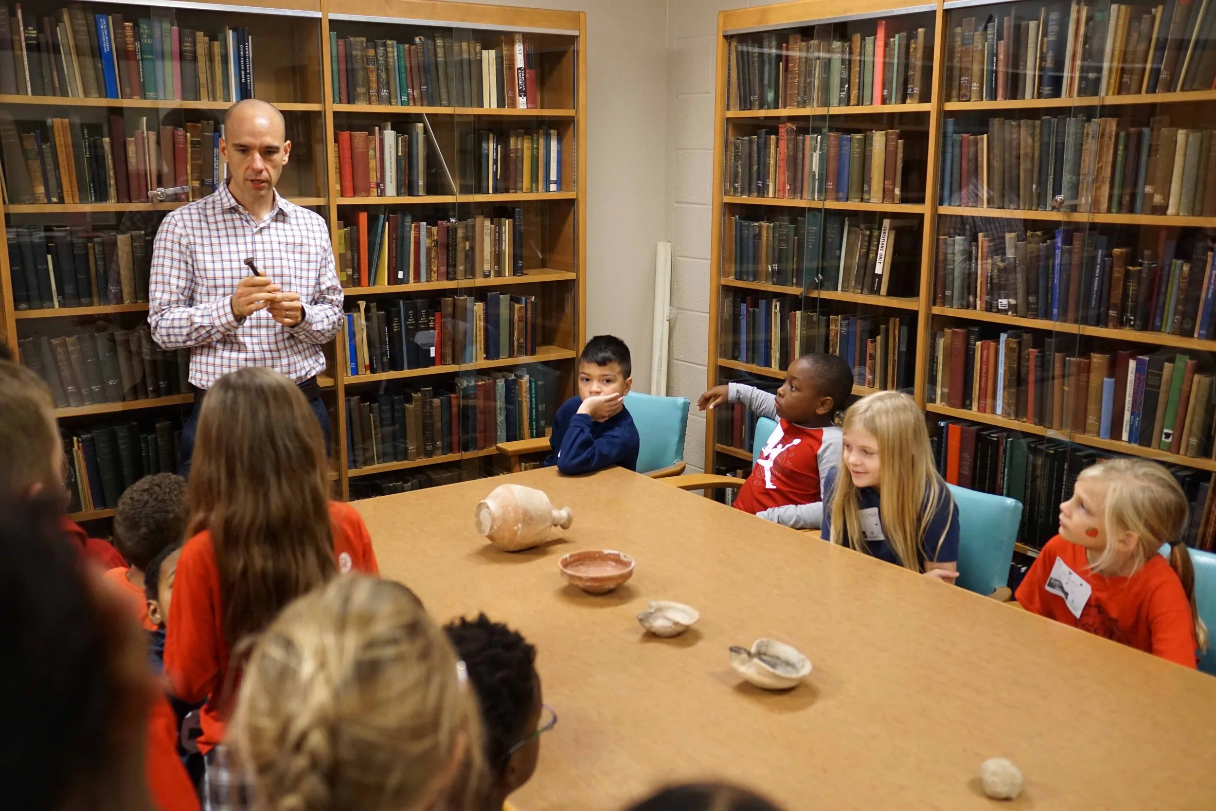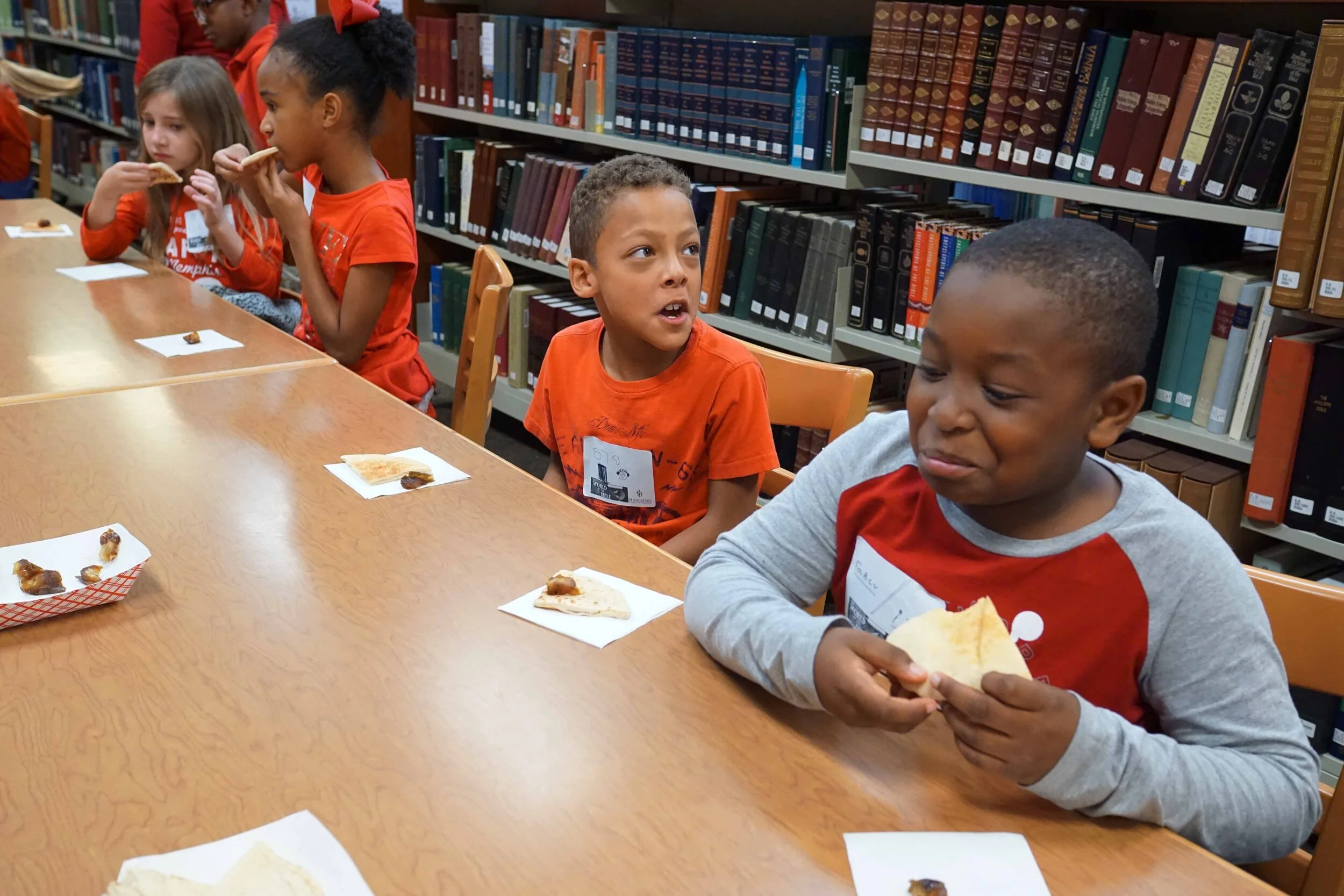On Monday, October 21 our third grade classes visited the Harding School of Theology library as a part of their Bible Times activities. At the HST library, the students learned about what life was like in Bible times. They wrote their names in Greek or Hebrew, experienced some foods of the culture, and viewed artifacts that date back to Biblical times. It was a wonderful experience hosted by Bob Turner and the library staff who have numerous artifacts and a wealth of knowledge.