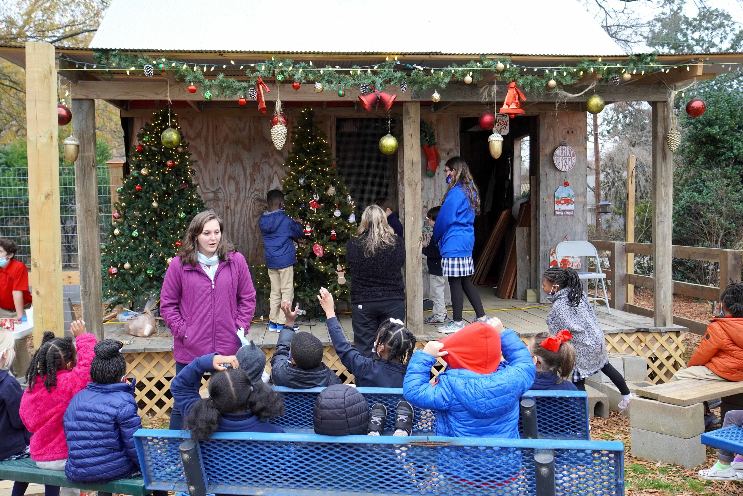 Our SK classes had a festive visit with Farmer Tim at the school farm! They brought ornaments to decorate the trees on his front porch, took a walk through his garden, met one of the chickens, and fed carrots to Deb the rabbit. Then they enjoyed hot chocolate and Christmas treats while Farmer Tim sat on his front porch and read Twas the Night Before Christmas on the Farm. What a wonderful way to celebrate this Christmas!